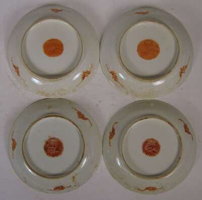 Four Chinese famille noire porcelain plates dragon symbol mark,19th century