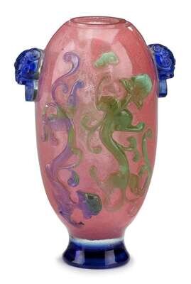 Chinese four-color pink ground glass vase qianlong period