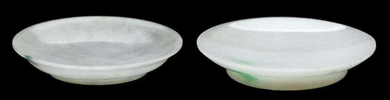 Matched pair of Chinese white and light celadon jadeite snuff dishes 19th century