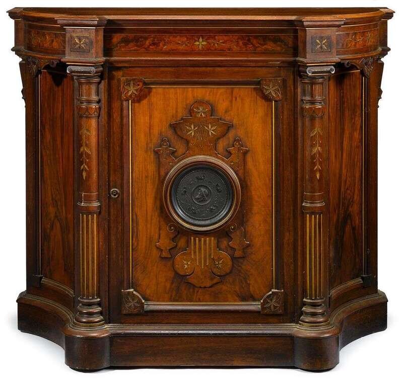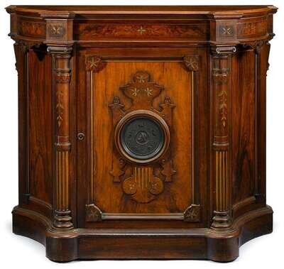 Renaissance Revival mahogany and mixed wood cabinet mid to late 19th century