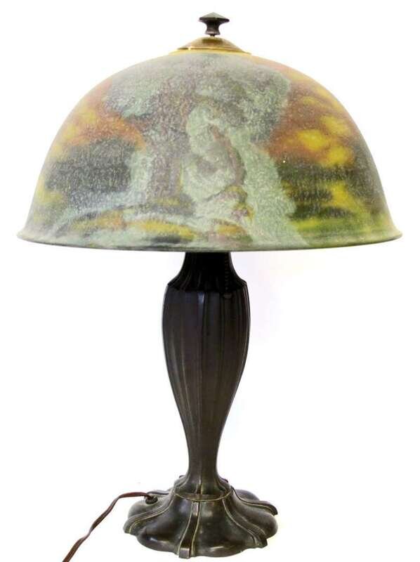 Reverse-painted and bronze table lamp late 19th/early 20th century