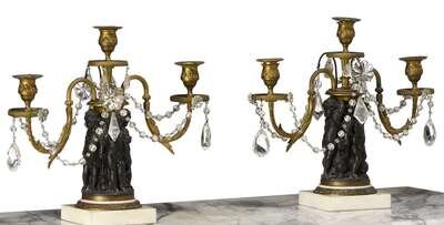 Pair of bronze, marble and gilt metal three-light candelabra french, 19th century