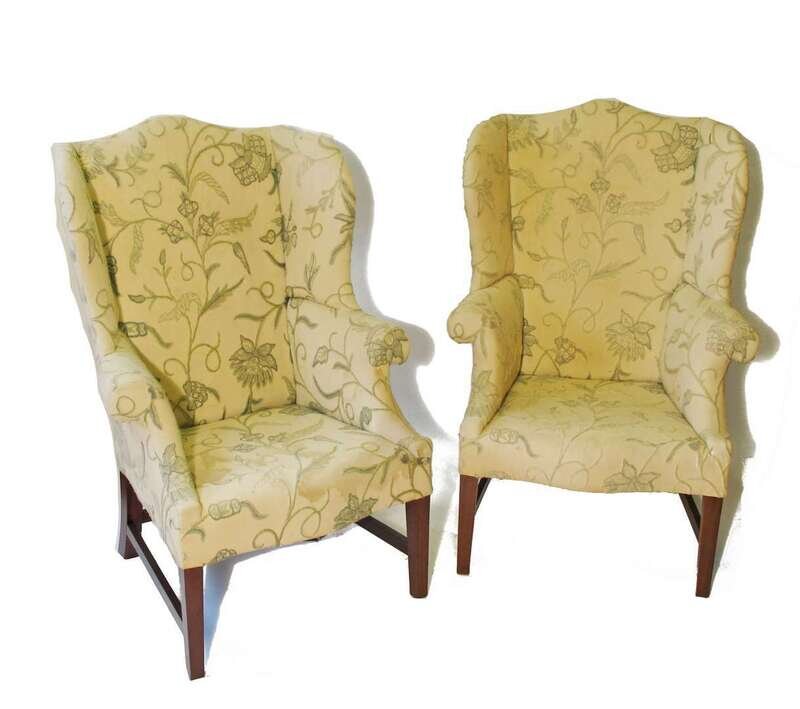 Each with arched back, shaped wings and outscrolled arms on square tapering legs.
