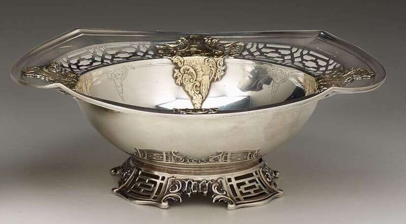 Sterling silver "Chinese Chippendale" mixed metal bowl retailed by bailey, banks, & biddle, late 19th/early 20th century