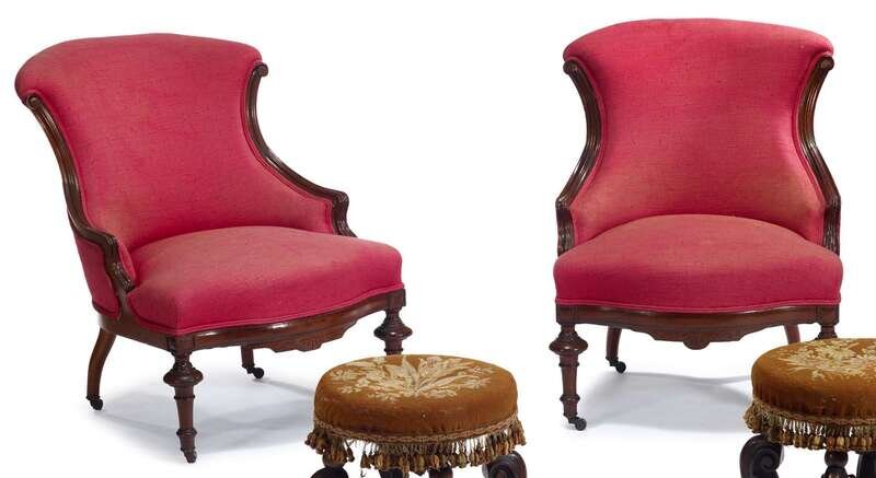 Pair of upholstered Renaissance Revival slipper chairs probably philadelphia, pa, circa 1865