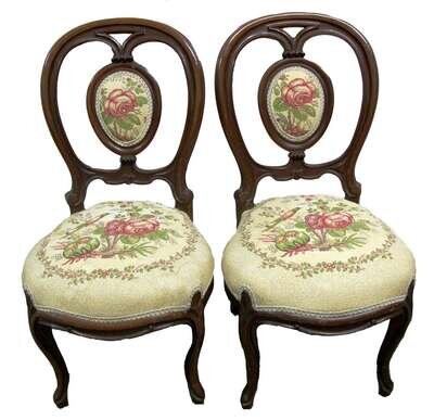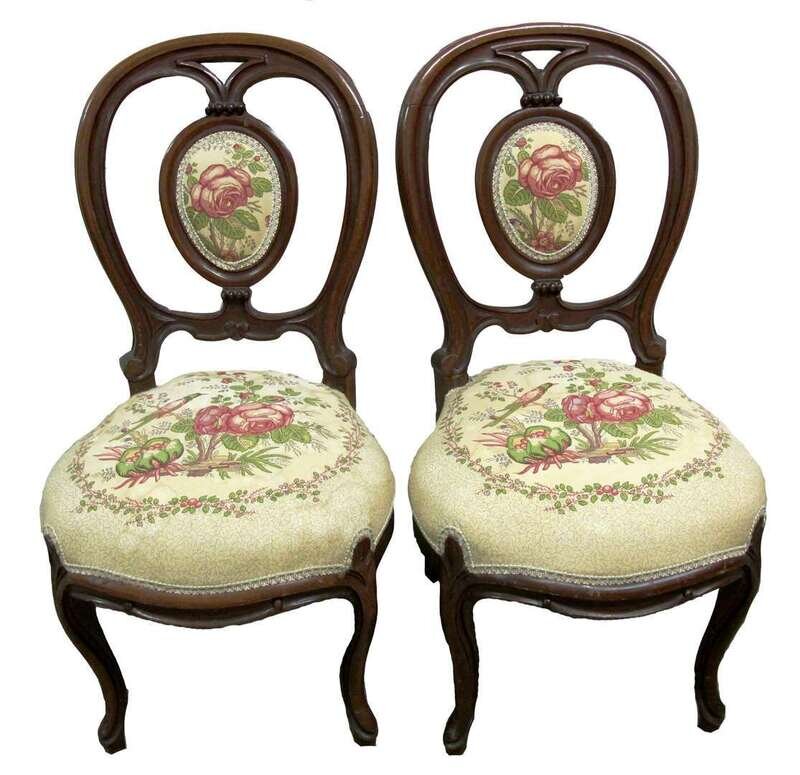 Pair of Rococo Revival walnut side chairs circa 1875