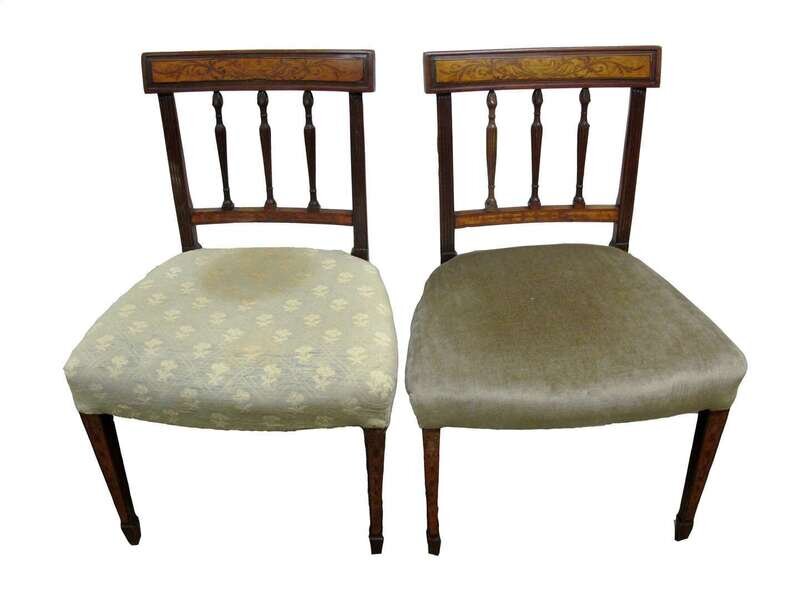 Pair of Regency mahogany and marquetry side chairs 19th century