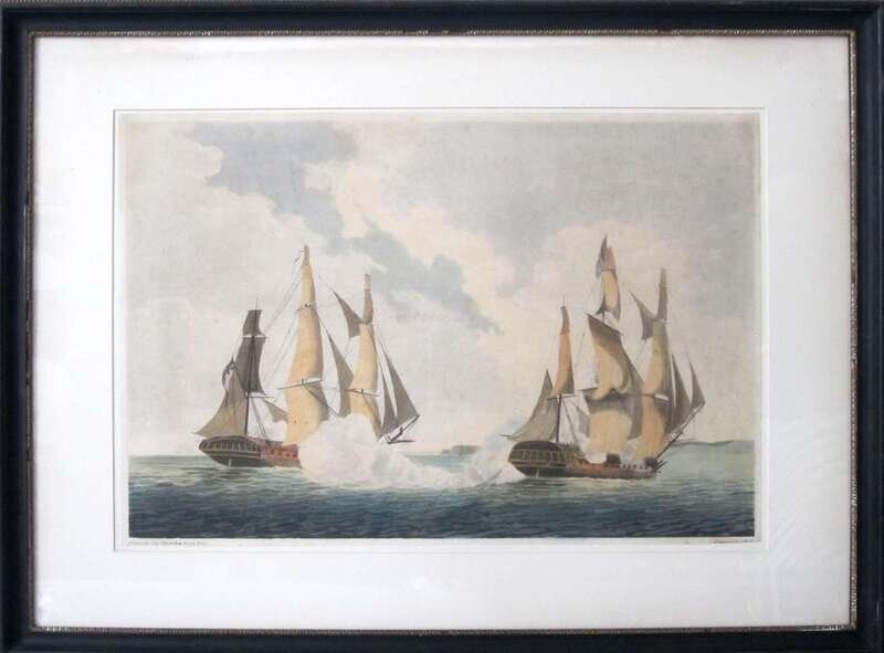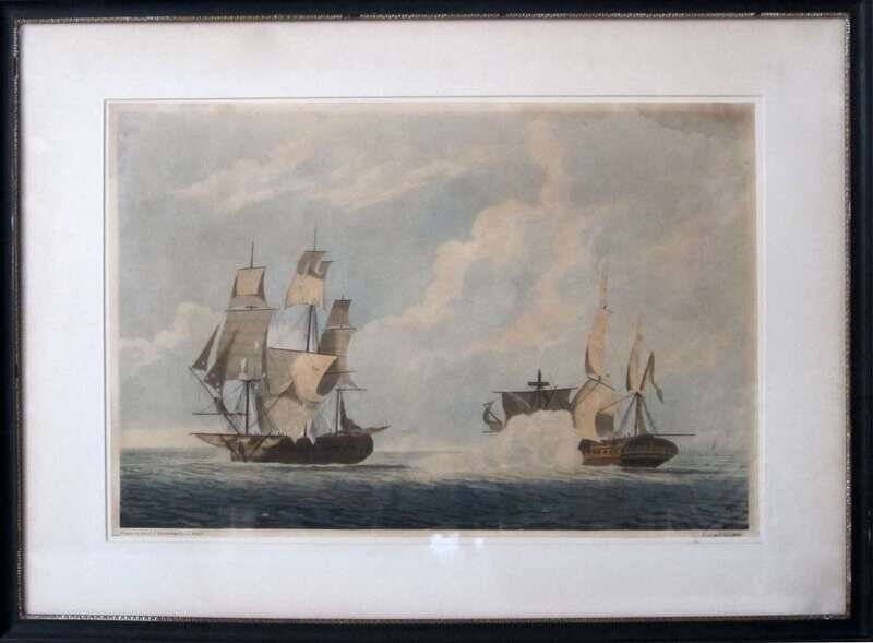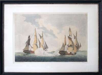 Two aquatints: After Lieut J. Mackellar, Royal Navy (late 18th century) "commencement of action between the french frigate la reunion and h.m.s. crescent"