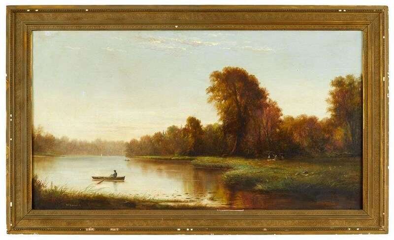 Wesley Elbridge Webber (1841-1914) river scene with boat