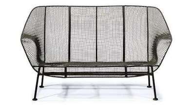 "Sculptura" wirework and iron settee and cocktail table russell woodard, owosso, mi, circa 1965