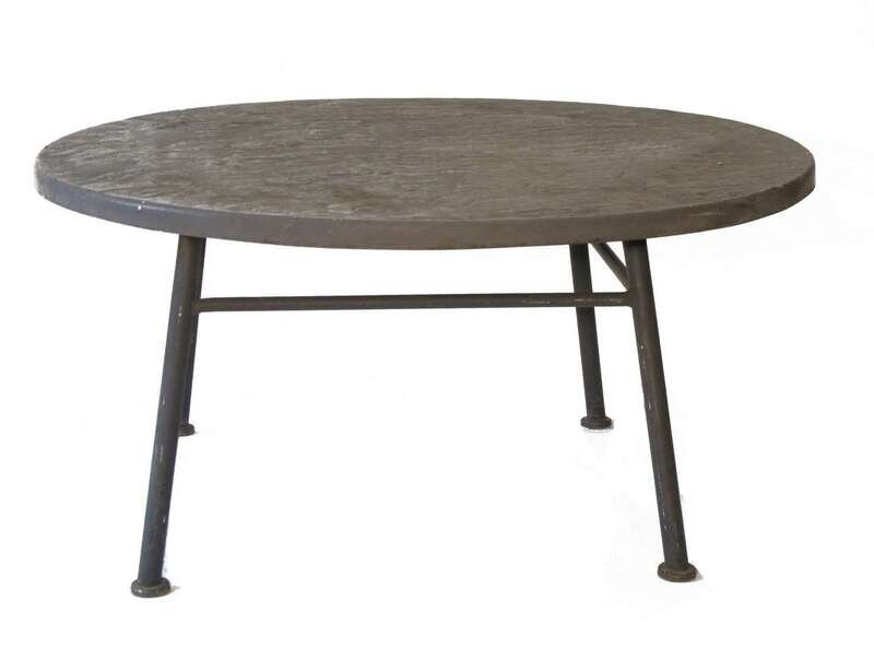 The table with a fiberglass circular top.