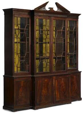 George III inlaid and figured mahogany breakfront bookcase england, circa 1785