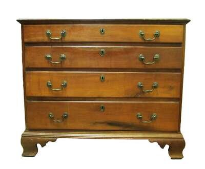 The rectangular top with applied molding above four graduated, lip-molded drawers on ogival bracket feet.