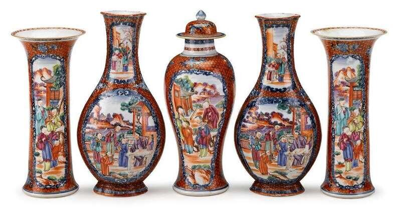 Chinese Export porcelain Rose Mandarin palette assembled garniture qianlong, circa 1775