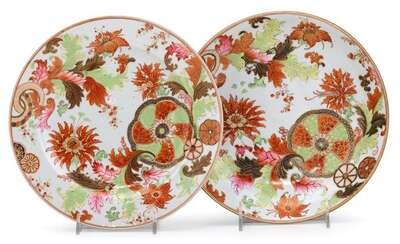 Chinese Export porcelain Famille Rose "Pseudo Tobacco Leaf" soup bowl and plate qianlong, circa 1785