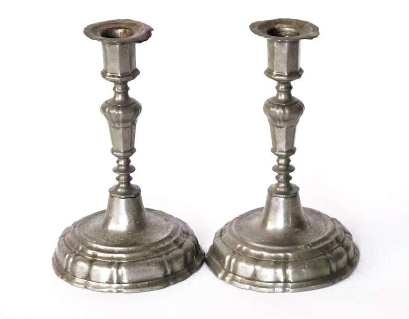 Marked "G&A" plus a figure, turned and octagonal shaft on serpentine dome shaped bases.
