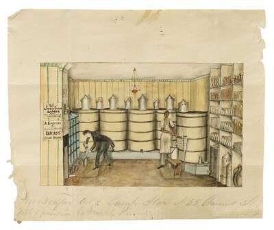 Joseph Shoemaker Russell (1795-1860) interior of the j.s. russell whale oil and lamp store, 55 chestnut st., philadelph