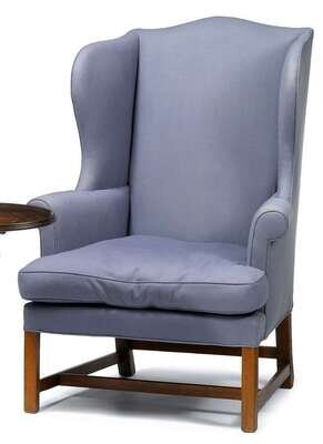 Arched cresting, shaped wings scrolled arms, on squared legs with beaded edge joined by stretcher.