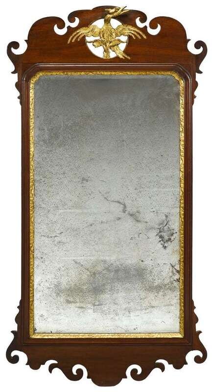 Chippendale mahogany and giltwood looking glass bearing printed label of john elliott (1713-1791), philadelphia, pa