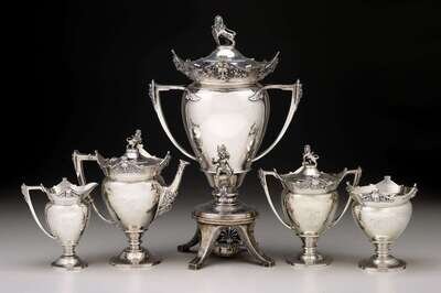 Fine five piece sterling silver tea service gorham corporation, providence, ri, 1869