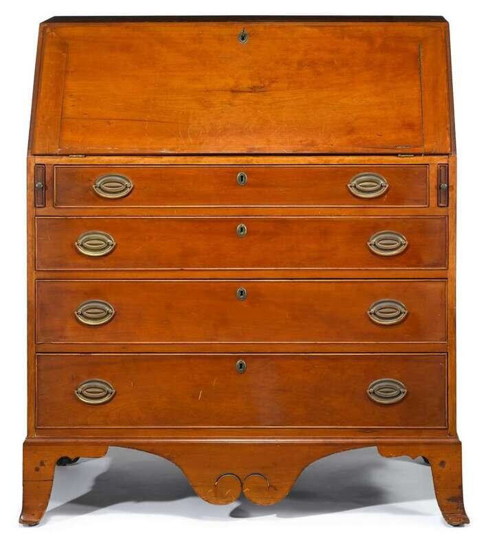 Federal cherrywood slant front desk mid-atlantic states, circa 1800
