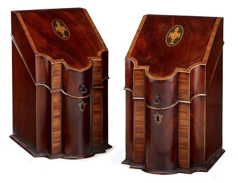 Pair of Federal-style inlaid mahogany knife boxes late 19th century