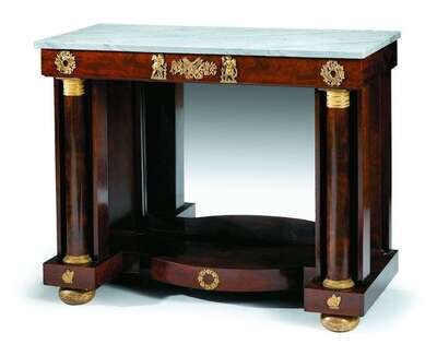 Classical marble top ormolu mounted mahogany pier table attributed to jospeh b. barry & son, philadelphia, pa, 1810-1815