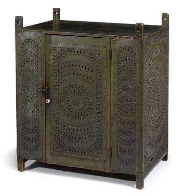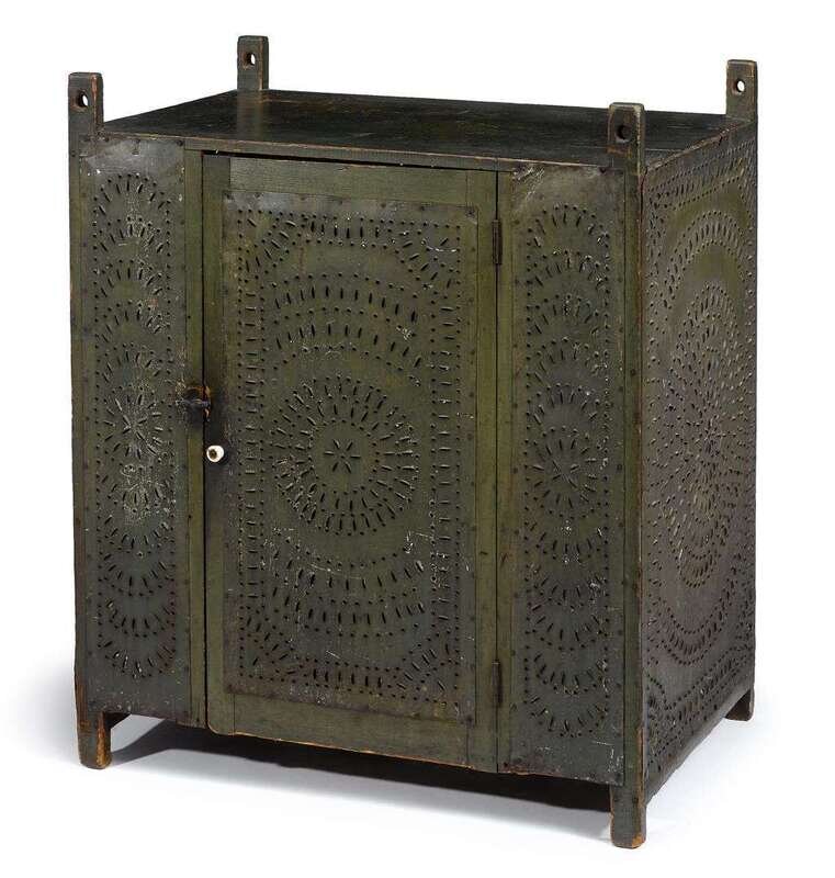 Green-painted punched tin hanging pie safe probably berks county, pa, 19th century