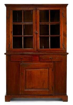 Step-back glazed cupboard pennsylvania, 18th century