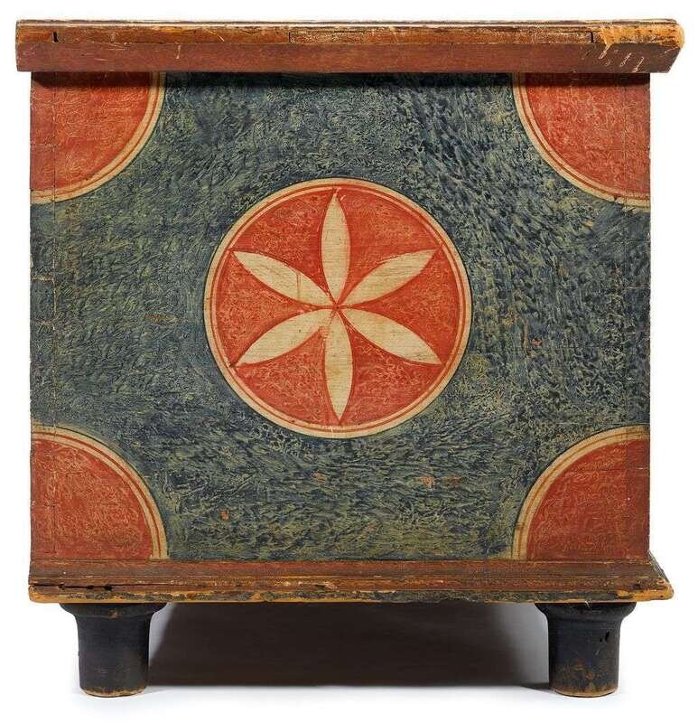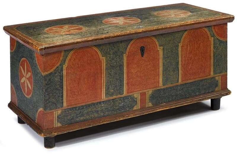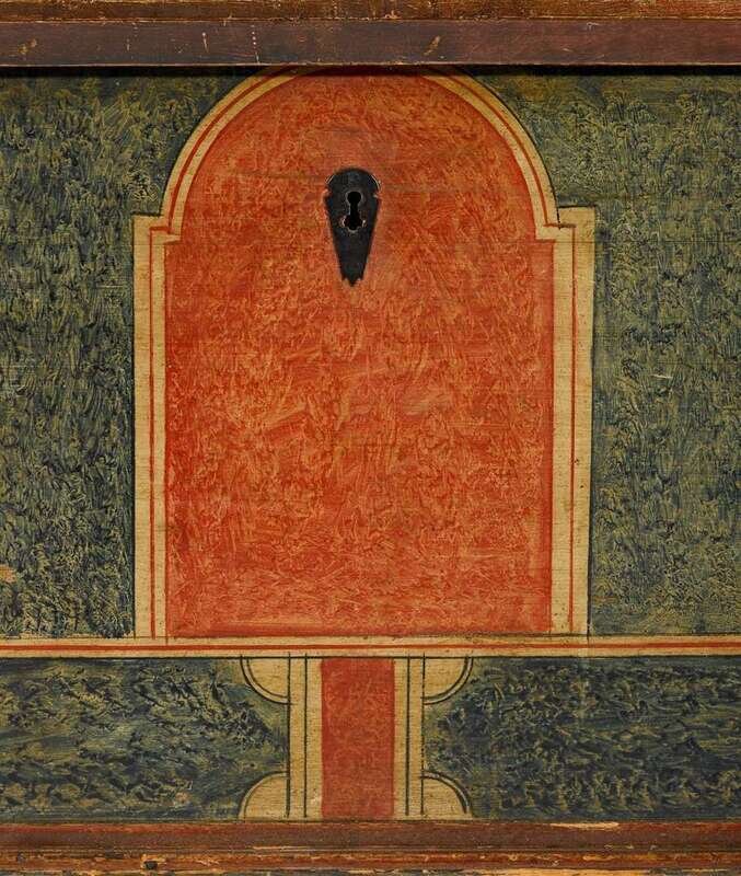 Painted and grain painted dower chest pennsylvania, early 19th century