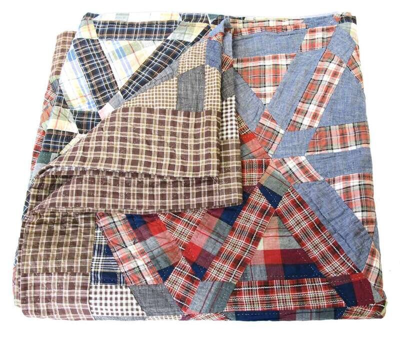 Various plaid and check cotton pieces arranged in an all-over star and diamond pattern creating a central hexagon enclosed by conforming bands.