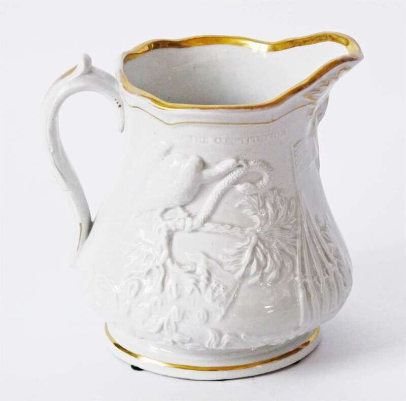 Commemorative stoneware pitcher millington astbury & poulson, trenton, nj, circa 1865