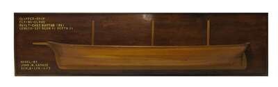 Painted inscription, "Clipper Ship-Flying Cloud Built East Boston 1851 Length 225 Beam 41 Dept 21."