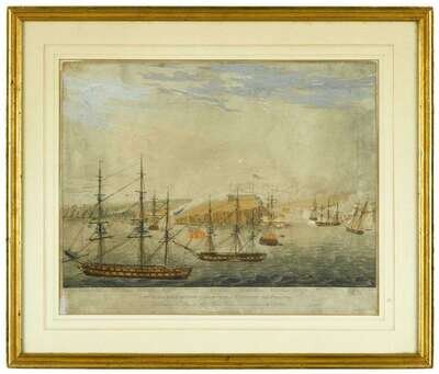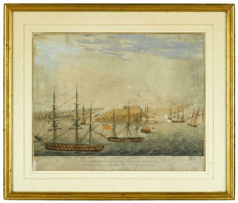 Engraver, Robert Havell (English, 1769-1832) "attack on fort oswego, lake ontario, n. america, may 6th, 1814, noon"