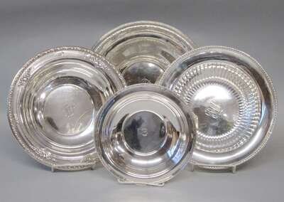 Four sterling silver bowls various makers including wallace, frank m. whiting co., and meriden britannia co.