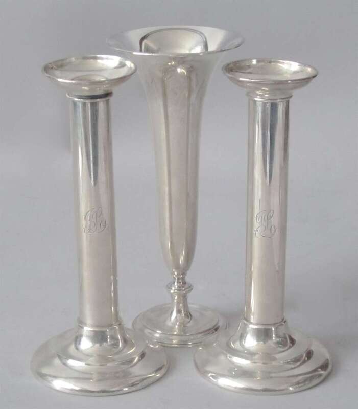 H(s): 8 in. (vase) and 7 5/8 in. (candlesticks) Weight: 19 troy oz.