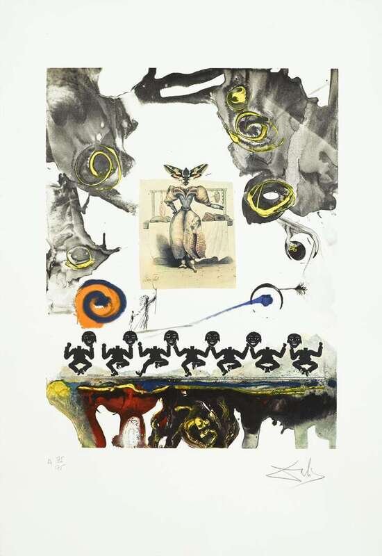 1971, each pencil signed and numbered A75/175 (there were also 40 on Japan plus a total of 35 artist's proofs), embossed signature on each sheet with artist's name, date and copyright stamp verso; Transworld Art, New York, publisher. With introduction, text by Dali in English, and pencil signed and stamp numbered justification page, in original black cardboard portfolio box with printed text as issued. Twelve color drypoint, etching and lithographs on Arches.