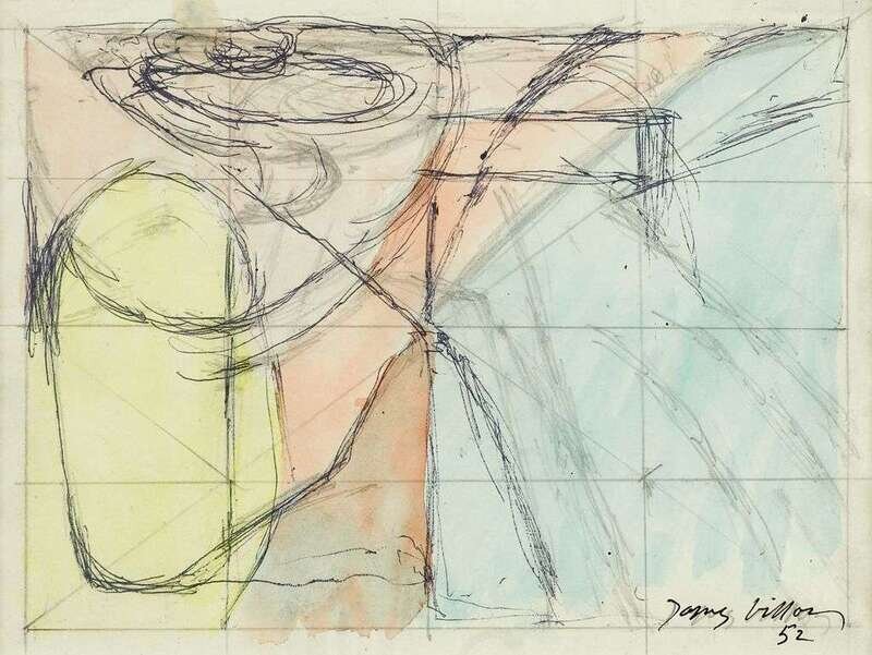 Signed and dated 52 in pencil and reinforced in black ink bottom right, titled and dated again bottom left and right, mixed media on paper
