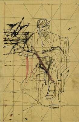 Signed and dated 34 in pencil bottom left, mixed media on tracing paper