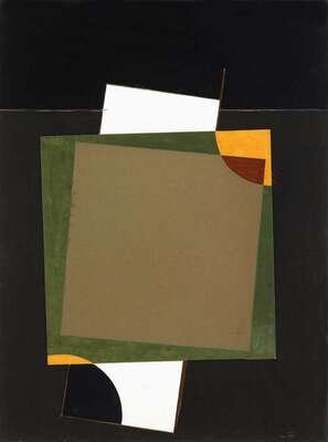 Signed and dated 1992 bottom right, gouache and collage on cardboard