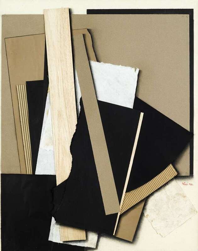 Signed and dated 96 bottom right, titled and dated on stretcher verso, mixed media collage on canvas