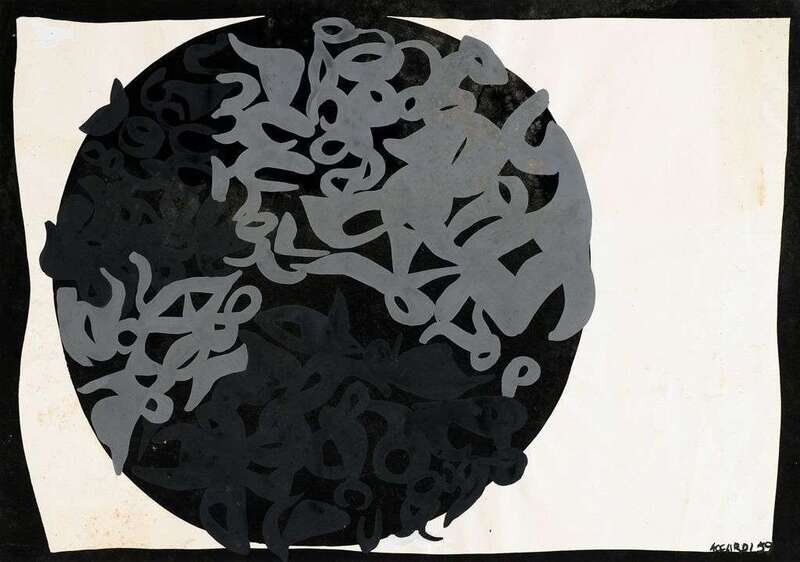 Signed and dated '59' bottom right, acrylic on paper