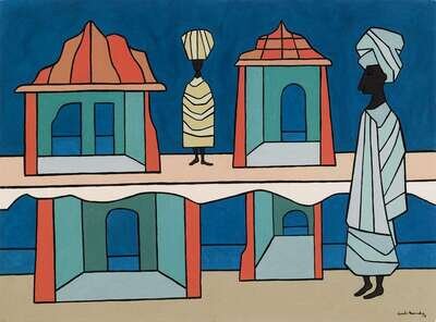 CUNDO BERMUDEZ (CUBAN 1914-2008) UNTITLED (TWO FIGURES IN A CITYSCAPE)