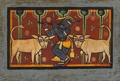 JAMINI ROY (INDIAN 1887-1972) KRISHNA WITH COWS