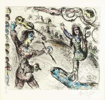 MARC CHAGALL (FRENCH/RUSSIAN 1887-1985) "ACROBATE ET VIOLINISTE"