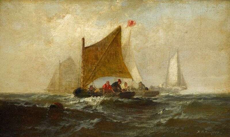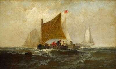 FRANKLIN DULLIN BRISCOE (AMERICAN 1844-1903) FISHERMEN ON CHOPPY WATERS