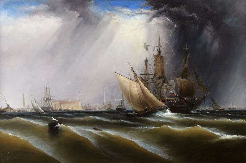 JAMES HAMILTON (AMERICAN 1819-1878) "VIEW OF PHILADELPHIA HARBOR"