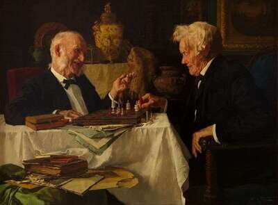 LOUIS CHARLES MOELLER (AMERICAN 1855-1930) "THE CHESS GAME"