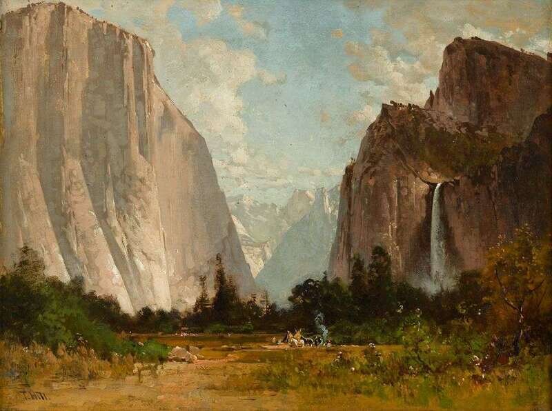 THOMAS HILL (AMERICAN 1829-1908) AN INDIAN ENCAMPMENT IN THE YOSEMITE VALLEY