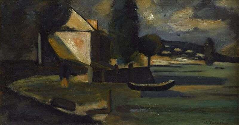 WILLIAM ZORACH (AMERICAN 1887-1966) ESTUARY WITH BOAT